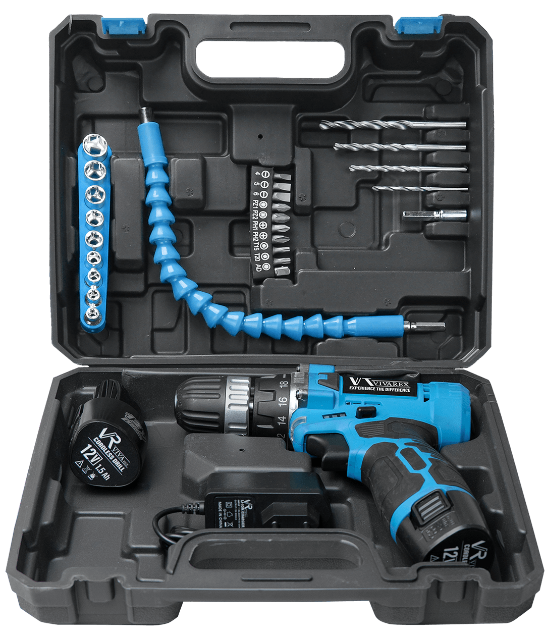 دریل شارژی ویوارکس مدل VR1210-2A با جعبه‌ی مقاوم BMC عرضه می‌شود که هم نظم‌دهی ابزار و هم حمل آن را ساده کرده است.
